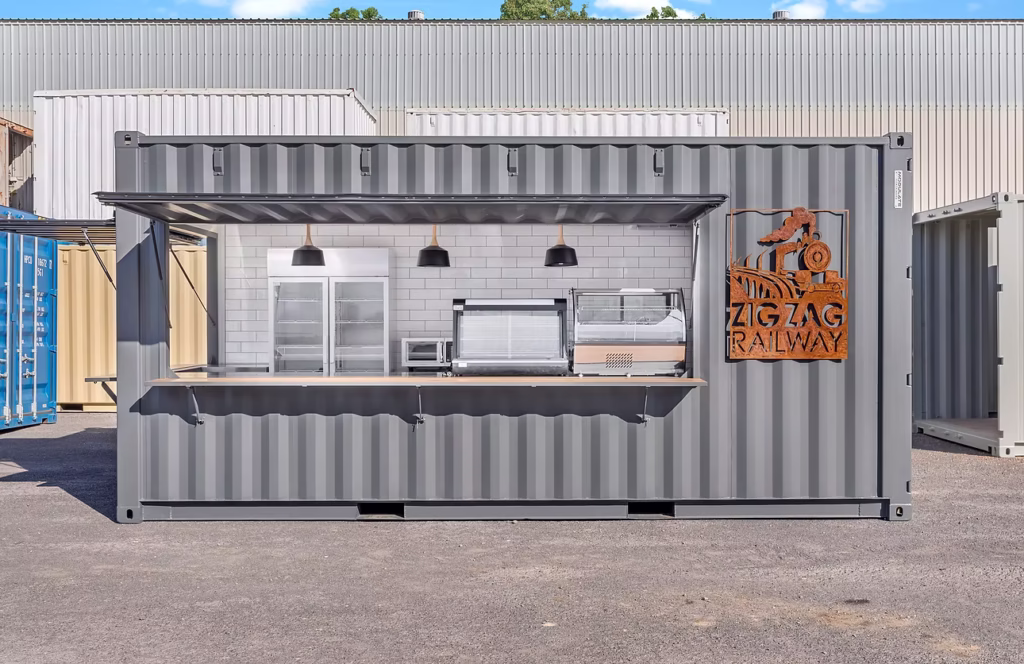This modular café combines practicality with style, offering a space that complements the natural surroundings while adhering to Australian food health and safety standards.